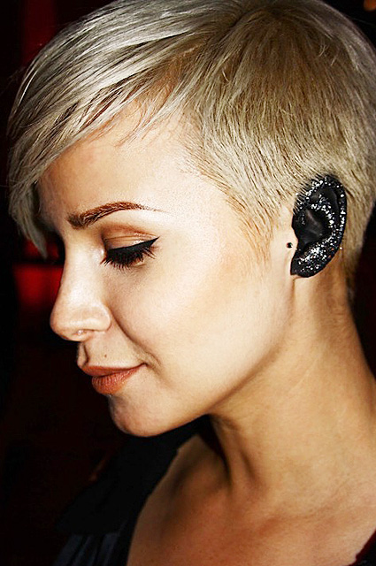 Как по мне такой вариант макияжа ушей может быть актуальным для вечеринки или модного показа.